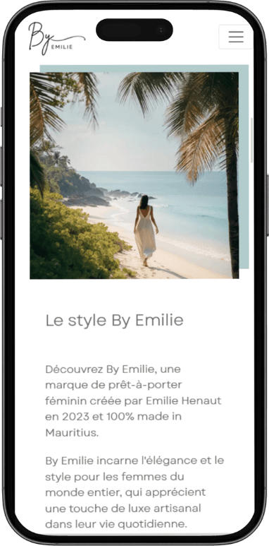 ByEmilie est une marque de prêt-à-porter féminin créée par Emilie Henaut en 2023, basée à l'île Maurice. La marque incarne l'élégance et le style pour les femmes du monde entier, en proposant des vêtements 100% faits main à Maurice. ByEmilie valorise le savoir-faire artisanal mauricien et s'engage pour une mode éco-responsable et éthique.