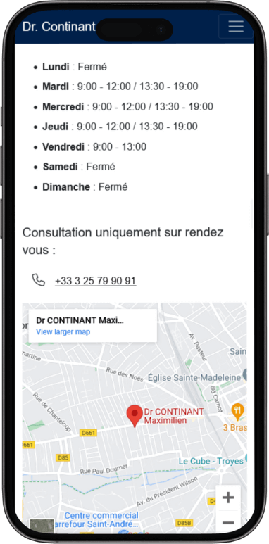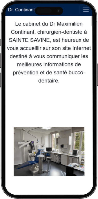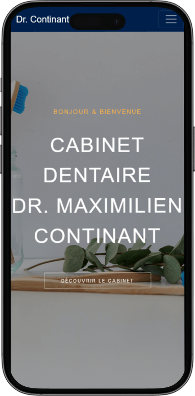 Le site web du Dr. Maximilien Continant utilise l'offre "Le site vitrine statique", ce qui permet de présenter les services du cabinet, l'équipe, les horaires et les informations de contact de manière claire et professionnelle.